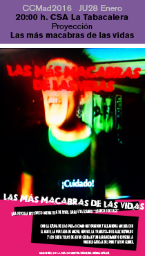 MÚSICA-SUBVERSIÓN: Giovedi 28 nel Centro Sociale La Tabacalera alle ore 20.00 “La más macabra de las vidas” apre il primo giorno del festival e racconta la storia della transazione -transizione alla democrazia attraverso Eskorbuto, il gruppo punk di Bilbao che ha rivoluzionato la musica nei primi anni Ottanta ed è diventato una leggenda della controcultura spagnola. Successivamente verrà proiettato il film "Un lloc on cauce mort” dopo il quale si svolgerà il dibattito Cine, Música y (Posibilidad de) Subversión, che coinvolgerà i direttori di entrambi i film Kikol Grau e MA Bianchi (cantante della rock band Manos de Topo)EMPATIA NELLA DIVERSITÀ: Venerdì 29 presso la Casa Encendida si potrà partecipare al workshop “The machine to be another” alle ore 18.00 che ci permetterà di sperimentare come sarebbe stare nel corpo di un' altra persona tramite tecniche di realtà performative e virtuali, l'iscrizione al taller avrà un costo di 5 euro. L'evento sarà completato dalla proiezione di "La puerta azul" e "Yes we fuck!" - Progetto sulla sessualità e la diversità funzionale - e dal successivo dibattito "Il corpo come campo di battaglia", con Raul de la Morena e Soledad Arnau.