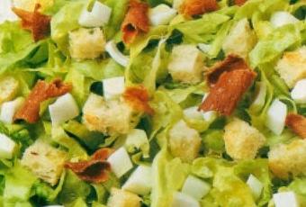 - Mettete le striscioline in una insalatiera, distribuitevi sopra i dadini di pane. Dividete le uova a metà, eliminate il tuorlo e riducete l’albume a dadini di 1 cm. Mettete i dadini di albume nell’insalatiera.Tagliate la bottarga a fettine sottilissime, usando un coltello molto affilato a lama liscia. Unitele nell’insalatiera. Versate in una ciotolina l’olio insieme con il sale, mescolate con una forchetta. Irrorate il condimento sull’insalata, mescolate delicatamente e servite