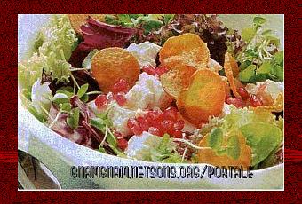 - Distribuite le insalate miste sui piatti individuali, coprite con i dadini di feta e la melagrana. Completate con le patate croccanti e condite con la vinaigrette rimasta.