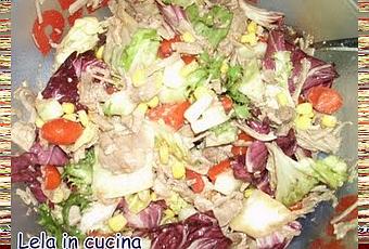 ingredienti carne lessa a pezzi piccoli (io solitamente uso cosce di tacchino) (consiglio...congelate la carne del brodo in inverno...) mais insalata verde