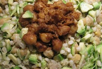 Mescolare orzo ceci, zucchina grattugiata e la dadolata di avocado...