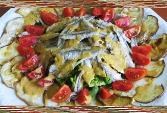 Melanzane, pomodorini, misticanza e alici fresche : ingredienti perfetti per un secondo piatto estivo, da servire tiepido.