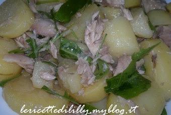 insalata estiva di patate con sgombro e rucola, una variante molto buona e stuzzicante della classica insalata di patate, questa volta con il profumo di mare e con la bontà della rucola che aggiunge sapore e gusto estivo al piatto, l'insalata di patate estiva con sgombro e rucola è ottima come piatto unico in dosi abbondanti mentre può essere servita come contorno o antipasto in piccole dosi