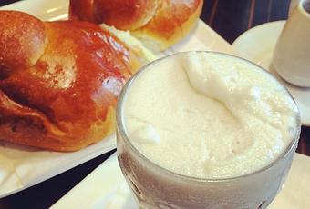 Granita alla mandorla con caffè liquido e briosche