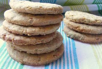 Lavorate le farine, i fiocchi d'avena, il bicarbonato e il burro. Unite lo zucchero, l'uovo e acqua quanto basta per ottenere una palla. Lasciate riposare per almeno 30 minuti in frigo. Stendete la pasta e tagliate con un taglia biscotti tondo con uno spessore di almeno 5 mm. Picchettateli con una forchetta e disponeteli su carta da forno. Cuocete a 180° per 15 minuti. Conservate in una scatola di latta.