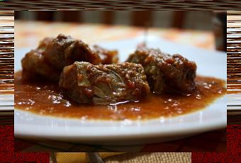 Battete bene la carne per renderla piuttosto sottile e mettete su ogni fetta una di lardo, un pò di formaggio, mezzo spicchio di aglio, prezzemolo, sale e pepe. Arrotolate e legate con il filo. Rosolate gli involtini con il lardo tritato e l’olio, aggiungete la cipolla, la salsa di pomodoro, sale, basilico e un poco d’acqua, quanto basta. Dopo mezz’ora aggiungete il vino e cuocete con molta cura a fuoco lento per circa due ore. Potete, se lo desiderate, usare il sugo per condire un primo piatto di pasta.