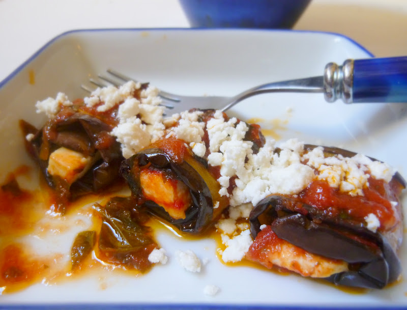 Sistemati gli involtini su una teglia, ci ho versato sopra la salsa e ho cotto per circa 20 minuti. Sempre al forno.