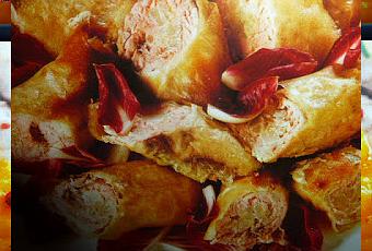 srotolate 4 fogli di pasta brick e con ognuno di essi avvolgete un involtino senza chiuderne l'estremità eliminando l'eventuale pasta in eccesso ungete gli involtini di spada con olio e infornateli a 210° per7'