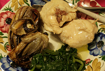 Involtini di pollo e salsiccia con contorno di radicchio e bietoline