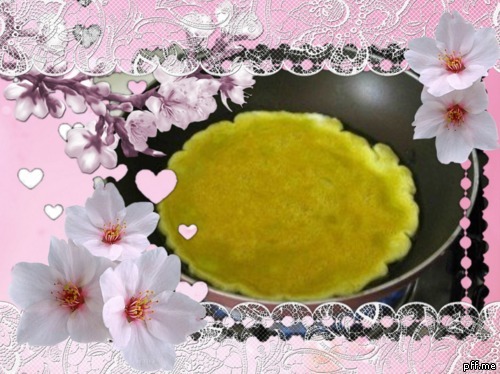 In un padellino unto, versate un po' di uova sbattute, ricavandone 4 piccole frittatine.