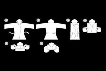 Che sul letto son buoni tutti (io no), ma dategli una forma razionalmente risparmiosa in termini di spazio tenendolo su, senza appoggiarlo su una qualche superficie e alla fine chiudetelo pure con la cintura a mo' di pacchetto regalo.