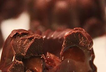 A questo punto, con lo stesso cioccolato temperato e sciolto a bagnomaria coprite i cioccolatini. Lasciate asciugare fuori dal frigo quanto necessario e sformate quando pronti.