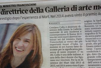 Le istituzioni trentine, raccontano oggi i quotidiani locali, gioiscono e si complimentano. E per sovrammercato lasciano intendere ai gonzi che l’approdo di Cristiana alla direzione più importante museo nazionale di arte contemporanea, sarebbe da mettere in relazione con la sua formativa (?) esperienza provinciale – nel senso di provincialismo – al MART di Rovereto.
