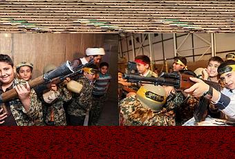 A riprova di quanto scriviamo, vi mostriamo alcune tristi immagini di un campeggio estivo per bambini organizzato a Mashhad dai Basij, la milizia paramilitare controllata dai Pasdaran, responsabile delle repressioni delle proteste dei giovani iraniani tra il 2009 e il 2011. Come vedrete nelle immagini, invece di essere cresciti nella gioia di giocare spensierati, questi bambini iraniani vengono addestrati all’uso delle armi e al culto del martirio, una triste tradizione sacralizzata nell’Islam proprio dall’Imam Khomeini. Non solo: mentre Obama e Kerry discutono con Zarif e il team negoziale iraniano, i clerici nella Repubblica Islamica invitano questi innocenti bambini a calpestare fisicamente le immagini dei rappresentanti americani, considerati il simbolo del male (il Grande Satana). Immagini, tra l’altro, recentemente gia’ viste in Iran durante le marce per la ‘Giornata di Gerusalemme’ (qui le immagini).