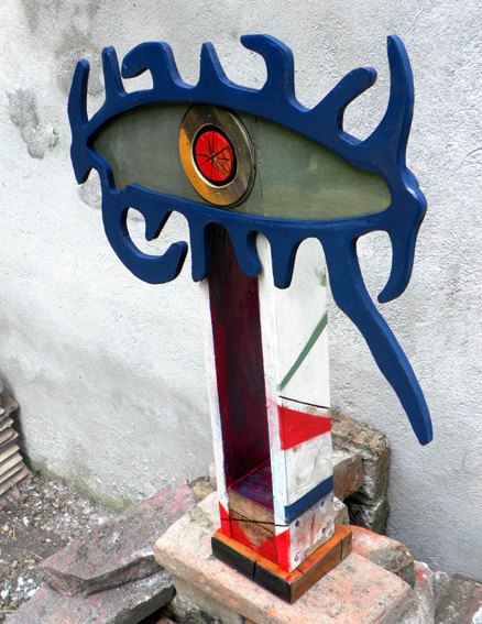 Iride di Legno è la nuova serie di opere prodotte da IUCU; l'artista indaga il tema dell'occhio, partendo dal suo valore intrinseco e ruolo che funge come "tramite tra l'interno e l'esterno delle cose". "l'occhio appare in numerose opere dell'artista in maniera ossessiva e in questo caso diventa icona fisica con una serie di sculture realizzata totalmente con materiale di recupero. Il progetto Iride di Legno viene accompagnato da un manifesto espositivo che tratta e promuove l'esposizione artistica all'interno di spazi commerciali ma contestualizzando le opere all'interno degli stessi.