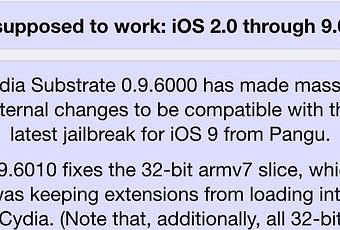 Sembri che Saurik, sapeva del rilascio a breve del tool per eseguire il Jailbreak di iOS 9.x.x, infatti su Cydia ha appena aggiornato il Cydia Substrate e il Cydia Installer per renderli compatibili anche con quest’ ultimo tool per eseguire lo sblocco con Pangu.