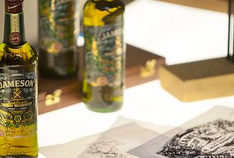 David Adrian Smith è un maestro nella decorazione su vetro, e per questo merita tutta la mia invidia. Il marchio di Whiskey Jameson gli ha commissionato il label design della bottiglia in edizione limitata dedicata alla festività irlandese di San Patrizio del 17 marzo, optando giustamente di stampare il lavoro direttamente sul vetro.