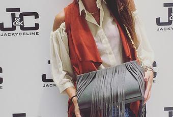 Lo scorso 21 settembre sono stata all'evento del brand JackyCeline, nello store Pellux qui a Milano, per la presentazione della nuova collezione autunno/inverno 2015/2016, nonché del nuovo concept creativo della campagna, #STYLEINMOTION. Protagonista di questa è la blogger Chiara Nasti, la quale rappresenta, nel video ideato, una ragazza glamour, ironica e dinamica, in continuo movimento tra i vari impegni della vita quotidiana. Un pò come la sua borsa, la "KatyFranges", tote bag in pelle con lunghe frange in camoscio che, con il loro movimento, evocano il mood attivo. Altra versione del modello è rappresentata invece dalla KatyFranges pochette, realizzata anch’essa in pelle con frange e ciondolo a contrasto, con tracolla in catena gold, perfetta anche di sera.
