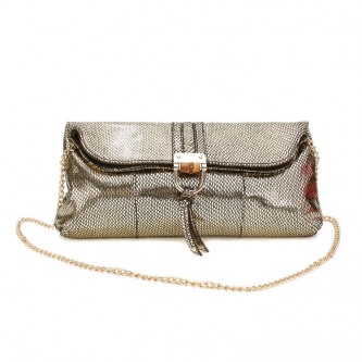 Gold Metallic Snake Texture Clutch Bag