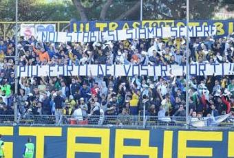 Romeo Menti di Castellammare di Stabia, in scena la partita di Lega Pro tra le vespe e il Matera. Il match si concluderà con un pareggio che poco soddisferà i supporters di casa ancora scottati dalle recenti polemiche per il mancato ripescaggio in Serie B. Succede, però, un fatto piuttosto curioso prima che la partita abbia inizio.