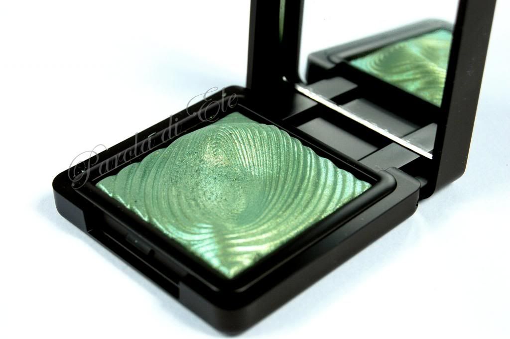 Ha una scrivenza paurosa, è super pigmentato. E' metallizzato, per un perfetto risultato glow. Il colore è vibrante e crea un realistico effetto 3D una volta applicato. Si sfuma facilmente ed ha un'ottima durata. La texture è morbida e la polvere è sottilissima. Insomma: mi son dovuta ricredere. Essendo un water eyeshadow appunto, è possibile applicarlo anche da bagnato ma vi assicuro che anche da asciutto è notevole. Inoltre è stratificabile per modularne l'intensità.