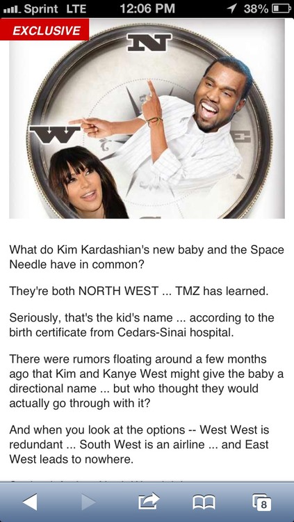 La rete si è espressa e i giochi di parole sono iniziati.Da notare il profilo twitter @ImTheNorthWest che ha già oltre 32 mila followers! Divertenti i tweet tra cui "*goes to school* *report cards says* *Has trouble following directions*" :DE voi che ne pensate?