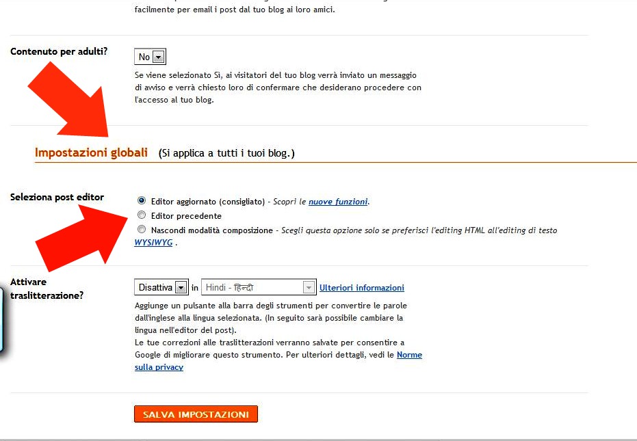POST NEL POSTQUALCHE PRECISAZIONE SUL POST PRECEDENTEVi ricordate? Vi ho parlato di Blomming, il sito di prossima apertura (ma già attivo in fase sperimentale) che permette di embeddare le vostre inserzioni direttamente nel blog... Se avete un blog "antico", il mio ad esempio lo è, potreste avere delle difficoltà a fare l'embed; il problema è risolvibile: entrate in IMPOSTAZIONI, scorrete la pagina fino in fondo e arrivate a IMPOSTAZIONI GLOBALI, qua aggiornate l'editor, mettendo la spunta su Editor aggiornato e salvate.