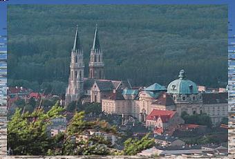 Klosterneuburg si trova sulla riva destra del Danubio, alle pendici del Wienerwold (Bosco Viennese) e deve il suo nome, "nuova città del monstero", al santuario qui istituito dai monaci agostiniani nel 1106.