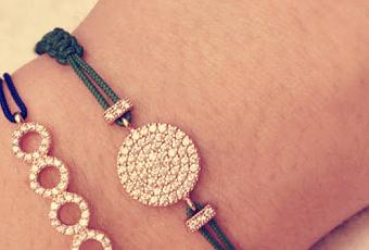 I bracciali Kurshuni sono in corda sintetica (così che non perdono colore) con gioielli in argento e brillanti zirconi.