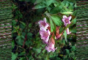 Le foglie dell'Abelia risultano essere ovali , dal margine dentellato di ridottissime dimensioni molto resistenti ed assumono un colore verde scuro tendente al lucido . Per contro le foglie appena nate , invece , sono di colore bronzeo . Questo colore verrà assunto dalla pianta tutta man mano che l'autunno incalza . L'abelia , in condizioni normali , ha una fioritura abbondante e duratura , motivo per il quale è molto apprezzata come pianta da giardino . Il periodo della fioritura inizia a giugno e termina ad agosto . I fiori dell'Abelia si presentano fiori tubolosi in alcuni casi , in altri a forma di campanula all'altezza dei germogli laterali . Dai suoi fiori si sviluppa un frutto legnoso che contiene un seme singolo .