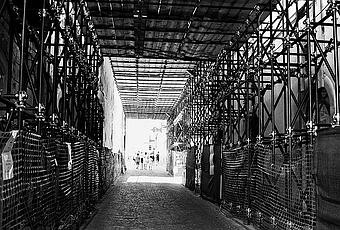 Già, il centro. Il centro "restituito ai cittadini" come ci hanno detto. Si, il corso che dalla Villa sale al Duomo, e che dal Duomo va alla fontana luminosa: questo è il centro restituito ai cittadini. Perchè tutto intorno non c'è più niente, tutte le traverse sono chiuse, e i palazzi sprangati. Anche il Duomo è aperto per metà, solo la parte iniziale diciamo, quella prima della cupola crollata. I negozi non ne parliamo: solo lo storico bar Nurzia è aperto, per il resto nisba. Almeno hanno portato via le macerie...Sull'impalcatura di un palazzo del centro - perdonatemi, non so di preciso che palazzo sia - la scena che ti stringe il cuore: centinaia di chiavi appese, "LE CHIAVI DELLE NOSTRE CASE, APPESE COME LE NOSTRE SPERANZE" dicono gli aquilani!