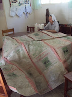 Abbiamo preparato l'aula per gli audiovisivi, ma purtroppo non abbiamo le sedie, percio' abbiamo fatto uso dell'esperienza della gente. Qui usano molto cucire insieme i sacchi vuoti del cemento e cosi' ho gia' preparato 5 grandi tappeti. Ci vuole un giorno intero a farne uno, ma alla fine e' venuta fuori una bella aula arredata con questo materiale di recupero, infatti dopo l'uso, i sacchi di cemento sono stati lavati e custoditi fino a questo momento.
