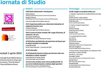 L’ESPERIENZA DI CURA EDUCATIVA IN SALUTE MENTALE, giornata di studio, 2 aprile 2014, Università di Milano Bicocca, Aula Martini