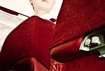 The overhead locker is an artificial sky that perfectly matches to the pale and severe figure, while temptation is stronger than prohibition.