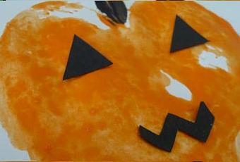 Halloween. Dopo averla intinta nel colore basterà imprimere la sua sagoma sopra un foglio bianco; visto che ho realizzato il lavoretto con Lorenzo che ha solo 2 anni, per agevolare la manualità nel tenere la mela in mano,
