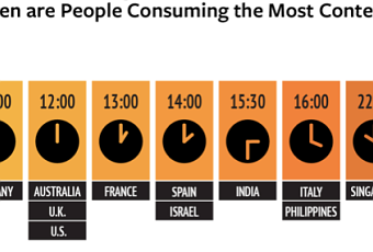 In primis si evidenzia come a livello internazionale vi siano variazioni significative a livello di orario in termini di picco di consumo di informazioni, di contenuti in Rete. Se siete un’azienda che opera a livello internazionale, un associazione di categoria e/o una fiera che guarda al di là dei confini nazionali l’informazione non è da trascurare.
