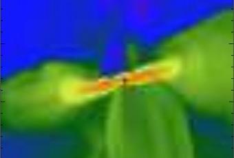 Queste immagini mostrano alcuni momenti delle simulazioni relative al piano centrale di un disco ruotante che orbita attorno a una protostella (puntino nero) secondo un modello 3D del collasso di una nube molecolare di gas e polvere causato dal passaggio di un’onda d’urto. A sinistra è rappresentata la densità, mentre a destra il grafico delle velocità mostra come l’onda d’urto (fronte più esterno) abbia prodotto delle rientranze a forma di dito responsabili della rotazione del disco attorno alla protostella centrale. Crediti: Alan Boss
