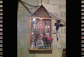 Da: La Stampa.itL'altarino religioso creato da Michele Misseri in memoria della nipote++++++++++++++++++++++++++++++++++++++++++++++Anche volendo non pensarci i media ci ricordano la banalità e l'assurdità del Male. Verrebbe da dire la "Follia", ma sarebbe troppo comodo e potrebbe creare la convinzione che i protagonisti di questa orrida storia siano pazzi, quindi non punibili.Il Male, il Crimine, esulando dalla Norma, sono sempre mostruosi, quindi anormali, distorcenti il pensare Sano; ma non per questo frutto necessariamente di menti inferme, quanto di menti devianti.Questo contadino dalla faccia apparentemente buona, che si autoaccusa di aver ucciso e violato il cadavere della nipotina acquisita, le dedica un altarino religioso, con immagini di Madonne e Santi che, ci si chiede, cosa possano significare per la sua coscienza. Non uccidere: è un Comandamento sacro non solo per i cattolici. Lui è cattolico, si provvede di "santini" tipici della religiosità più semplice del cattolicesimo, però dice di aver ucciso con motivi abietti una ragazzina che si fidava di lui.Viene da pensare che più che una religione egli abbia nella sua mente una superstizione, fatta di simboli ma non di morale ed etica cattolica. Ma anche così, in questa religiosità fatta di superstizione, dovrebbe temere il castigo divino che dovrebbe come minimo incenerirlo...