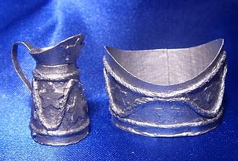Chiaramente non è in argento, ma è solo catoncino dipinto in color acciaio...