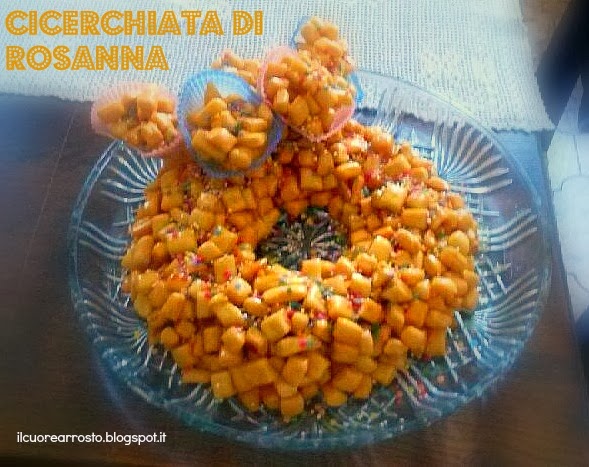 Come ogni buona ricetta anche questa è stata tramandata da madre in figlia...e come ogni ricetta tramandata anche questa riporta si gli ingredienti ma non le dosi...perchè le massaie d'una volta la preparavano ad occhi chiusi e non avevano certo bisogno di tante bilance e misurini ma il loro "occhio" bastava! Ma siccome io non ho quell'occhio...ho obbligato Rosanna a calcolare le dosi...certo, più o meno...e a fornirmi la foto della sua specialità!