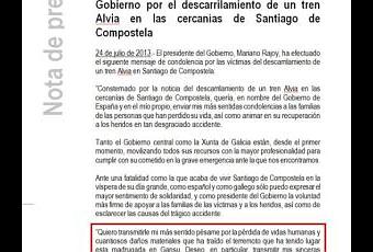 Le tecnologie sono state un grande vantaggio per le classi dirigenti, togliendo loro la fatica di dover ricordare le frasi fatte, rielaborarle ogni volta a seconda dell’occasione, riacconciarle per l’evento: il copia -incolla permette di eliminare anche questa modesta attività di pensiero e di fabbricare in pochi minuti il cordoglio, come il programma, la bugia come la falsa speranza. Alle volte può essere imbarazzante come è accaduto ieri a Rajoy che nel manifestare le condoglianze per le vittime dell’incidente ferroviario di Santiago, si è dimenticato di cancellare l’ultima parte, quella in cui esprime il “sentito dolore” – alquanto improbabile in quel governo di macellai sociali – per i morti del terremoto di Gansu in Cina.