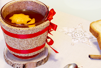 Ho pensato ad un materiale isolante che, oltre a tenere in caldo, se utilizzato per i bicchieri in vetro, evita che ci si scotti le mani. In più decora e "fa festa".