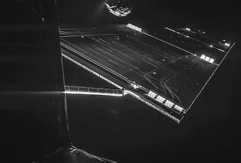 La sonda spaziale Rosetta è costituita da un orbiter e di un lander, chiamato Philae, che è stato inviato sulla superficie della cometa il 12 novembre 2014. A differenza delle precedenti missioni spaziali dedicate alle comete, che avevano effettuato soltanto incontri ravvicinati con i nuclei cometari, Rosetta è la prima missione spaziale ad orbitare attorno ad una cometa seguendola nel suo percorso verso il Sole, a planare, o meglio “accometare” sulla sua superficie, e a testimoniarne da vicino l’attività crescente.