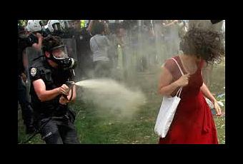 Quella foto racchiude l’essenza di questa : la violenza della polizia, dello Stato contro i manifestanti pacifici che difendendo un parco, stanno costruendo le fondamenta per una nuova Turchia.