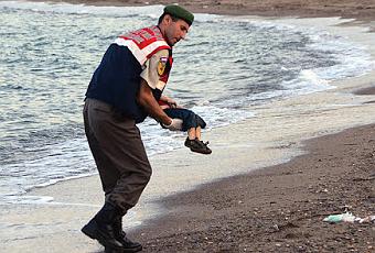 (AP Photo/DHA)Alcune barche di profughi siriani sono naufragate mercoledì davanti alle coste turche, vicino al centro turistico di Bodrum, mentre erano dirette all’isola greca di Kos. Tra le persone che sono morte nel naufragio c’era un bambino molto piccolo, e la terribile fotografia del suo corpo sulla spiaggia tra le onde sta girando molto su internet e facendo una grandissima impressione. Altre immagini, come quella qui sopra, mostrano la polizia turca che porta via il corpo del bambino. È terribile, impressionante, e rivelatrice insieme: racconta terribilmente una storia e molte storie. E pone ancora una volta la questione ormai quasi quotidiana delle scelte che si fanno tra mostrare ciò che aiuta a capire e a dare un’idea più concreta delle cose che succedono, e non mostrare ciò che sembra troppo indiscreto e doloroso delle tragedie. La fotografia è qui.
