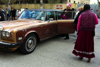 Questa foto sta facendo il giro del web e sta sollevando una marea di polemiche. Il vescovo emerito di Rimini Mons. Mariano De Nicolò arriva a bordo di una lussuosissima Rolls Royce per celebrare delle cresime nella chiesa di Bellariva. Alla faccia della crisi...