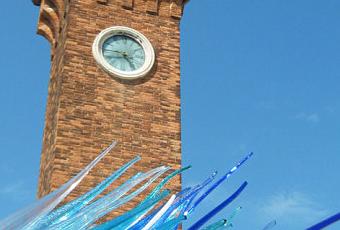 Nel nostro pigro peregrinare per Murano, dopo aver assistito a una dimostrazione delle tecniche di lavorazione del vetro artigianale più famoso del mondo, ci siamo imbattute in numerose opere rappresentative della eccellenza dei grandi maestri vetrai. Assolutamente prive di carattere sfacciato, queste creazioni se ne stanno immobili e solitarie ad adornare angoli e piazze dell’isola, spargendo riflessi di luce colorata e contribuendo ad impreziosire le vedute della laguna che si possono immortalare con le macchine fotografiche. A me hanno colpito in particolar modo i raggi cangianti e le mille sfumature di blu del “Natale di luce in una stella di vetro” realizzato nel 2007 da Simone Cenedese: 500 elementi in vetro soffiato, ormai considerati un’icona dell’isola del vetro, che hanno catturato il mio sguardo di turista e che oggi ripropongo a voi in uno scatto non dei migliori, ma sicuramente evocativo e d’effetto.