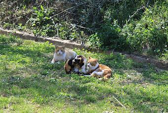 Gli altri gatti le stavano attorno, e le lei, incredibilmente stava partorendo alla luce del sole, davanti a noi.