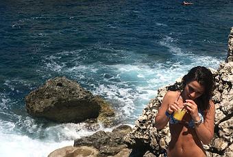 Those who know me well, know that Capri is my piece of heaven where now lies my heart. Each of us will have undoubtedly a place that most of all arouses particular emotions, which brings to mind pleasant memories, and where you feel really at home; here is this small isle of my Campania, is this for me .... I dare even more of the same Naples. As I hinted in my previous post, about ten days ago I ran away for the holidays, to take refuge from the heat of Milan in my south and once I was there, in the summer, a dip in the sea do not you do it? And then with bag in hand I spent a couple of days here in my "isla bonita" (yes, I call it that). I could give you a list of the type "10 things to do and see in Capri", but for now I stop to one of the "ToBe" place, if you happen to hang around here: that the Faro di Punta Carena. I do not know about you, but I can spend a whole day at the beach bathed in sunshine, with some dip here and there and a refreshing drink in hand ... then if we put as conclusion of the "perfect day", a sunset of the ones you jaw-dropping, and that make one exclaim "WOW", with aperitif of course, here I would say that after this exclamation can start to chain the followings: "Ask me if I'm happy" and "What do you want more from life?" In the following photos you can make approximately an idea of what I'm talking about and of course there's me, happy, while I'm wearing a nice bikini from summer2015 collection by the brand Bisbigli. So,what do you say, want you leave as me right now? :-P See you soon, Fabiana ps I swear that a list of that kind will do as the anthem of my unconditional love for this island.