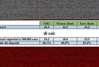 I depositi sono un debito per le banche e un credito per i depositanti. Le cifre della terza riga mostrano come i depositi bancari siano concentrati in poche mani, segno evidente di una economia quasi medioevale, con tanti poveri e pochi ricchi. Ebbene ai depositanti, per non allarmarli, il governo Tsipras aveva assicurato che gli sportelli bancari sarebbero rimasti sempre aperti. E questo lo ha detto anche pochi giorni prima della loro clamorosa chiusura. Ma non tutti lo hanno creduto, perché i depositanti, soprattutto i più ricchi, hanno iniziato a sentire puzza di bruciato con conseguente trasferimento del loro credito all’estero o dei contanti dentro i loro materassi. Si è così giunti alla mancanza di liquidità e all’incapacità delle banche di rimborsare i loro creditori, anche perché nel frattempo i debitori delle banche (imprese e famiglie che avevano ricevuto prestiti) mostravano grandi difficoltà nel restituirli.